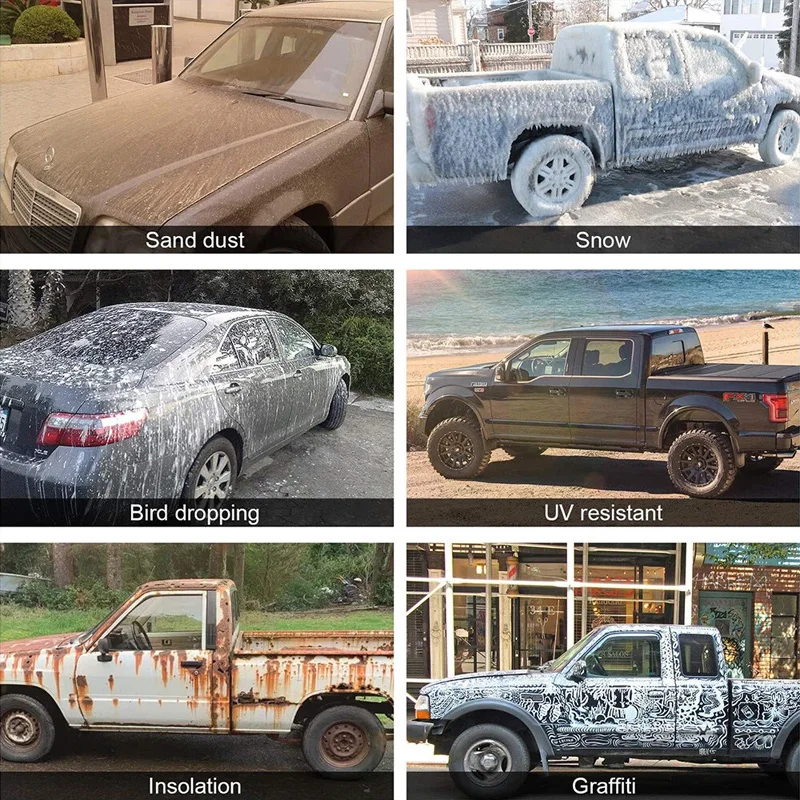 حماية لجميع المواسم: مقاوم للعوامل العاصفة في الربيع، ومحمي من الأشعة فوق البنفسجية في الصيف، ومقاوم للغبار في الخريف، ومقاوم للثلوج في الشتاء.حافظ على سلامة سيارتك لمدة عام - جولة.